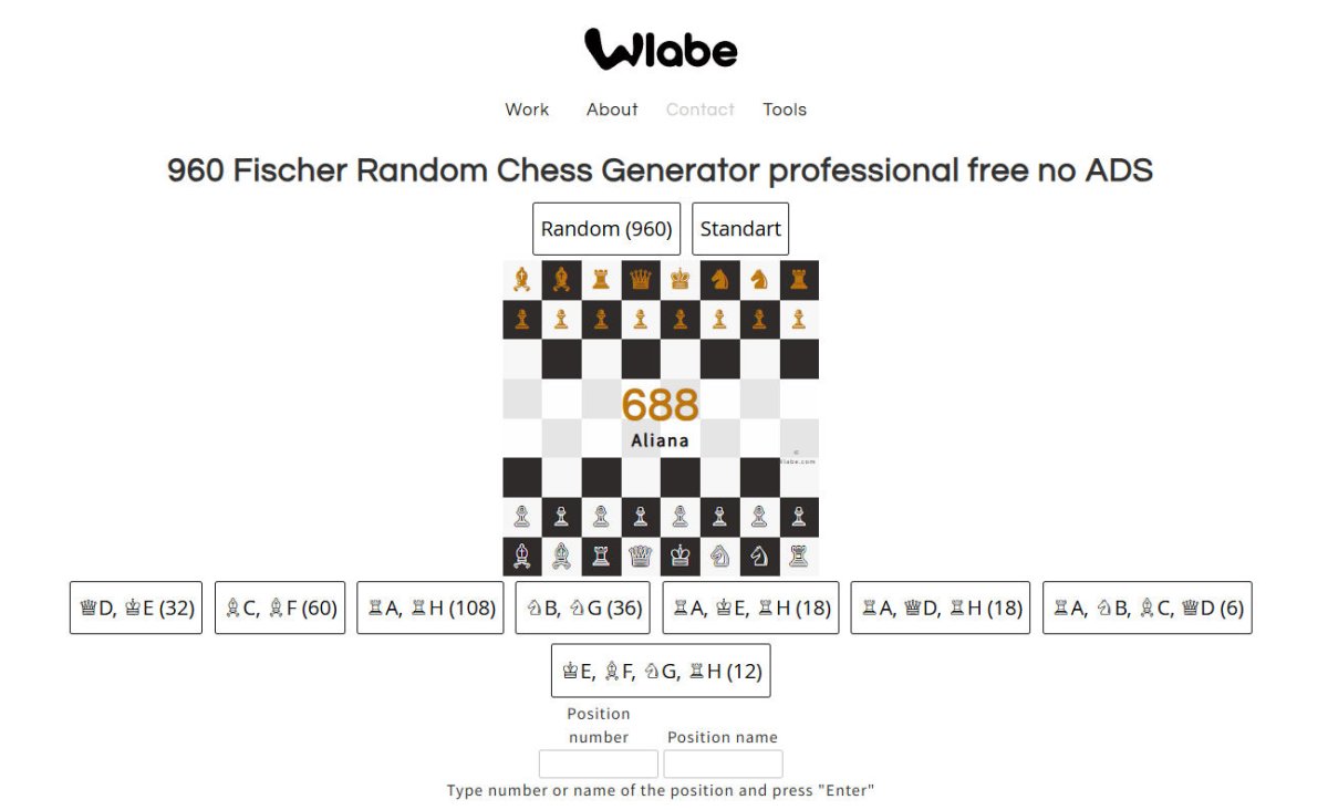 mais les pièces mineures ( cavaliers & fous ) et majeures ( tours, dame et roi ) sont choisies aléatoirement.