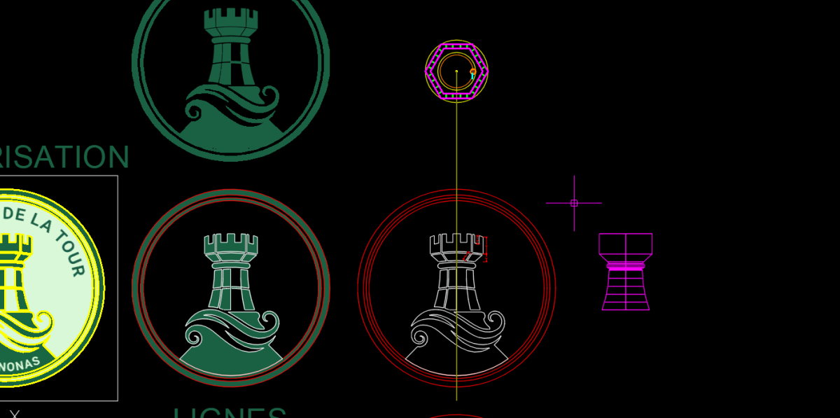 Ajout des créneaux, des cercles et des lettres qui composent le logo