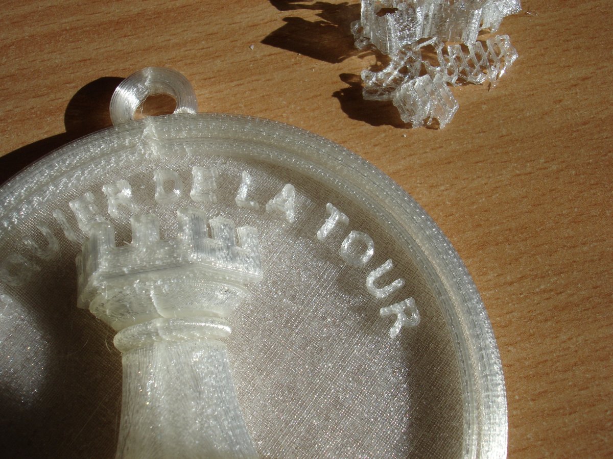 L'objet de 5cm est un peu trop petit pour que mon imprimante puisse le fabriquer correctement. J'ai eu du mal à enlever les supports dans les créneaux et le texte est illisible...