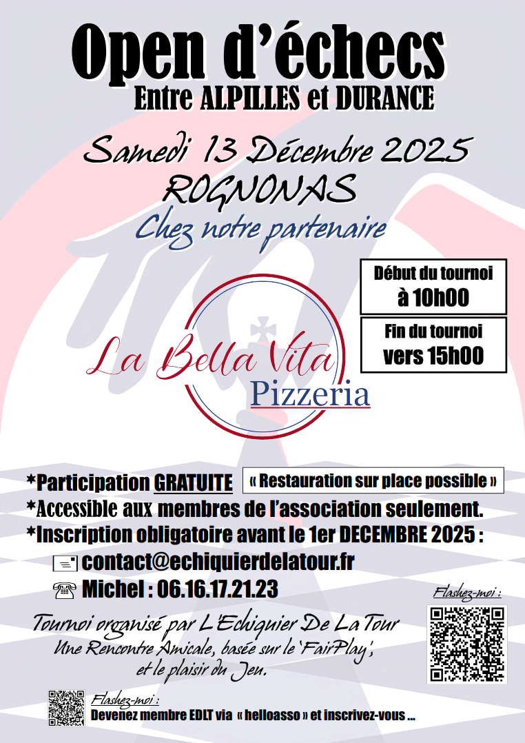 Voilà, un deuxième OPEN d'échecs à Rognonas qui se termine,